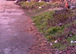 A Győr Nádor u. 1. mögötti parkban a járda mellett rothadó nyers hús van.