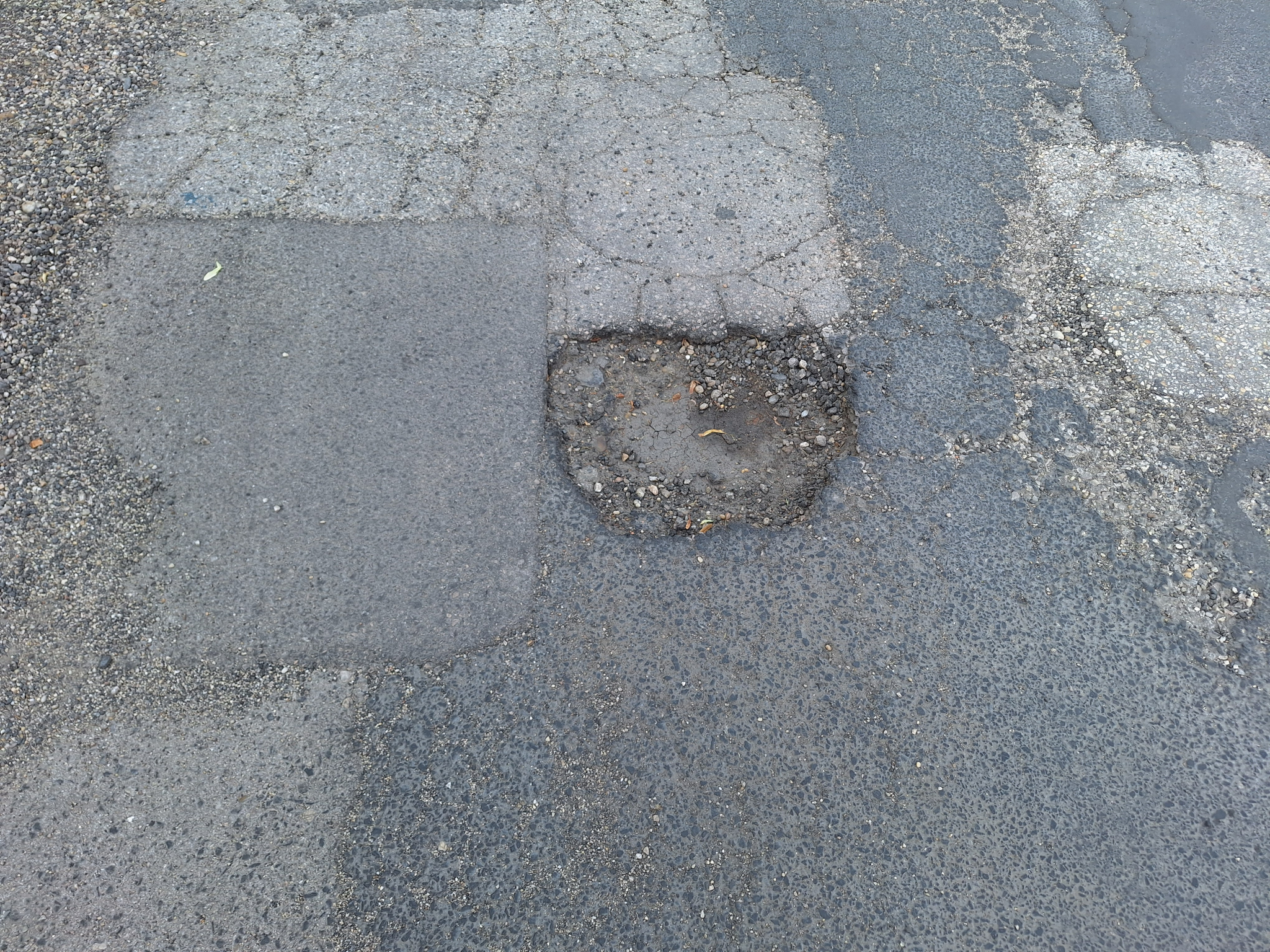 Az utcában autóval lassan már lehetetlen közlekedni, mert a kátyúkat nem lehet már hol kikerülni.
