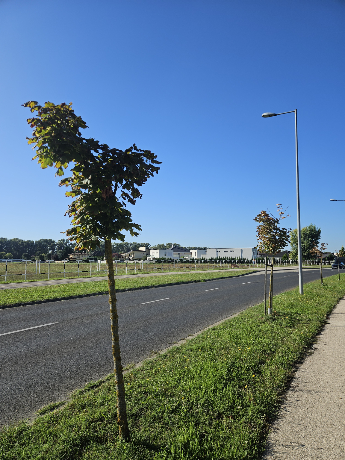 Győr Új Bácsai út és Bárka utcai körforgalmtól nyugatra a Bárka utca irányába egymás után 10-15 fa felső ágai teljesen elszáradtak. Még menthetőnek tűnnek, de valószínűleg vissza kéne vágni az elszáradt ágakat.
