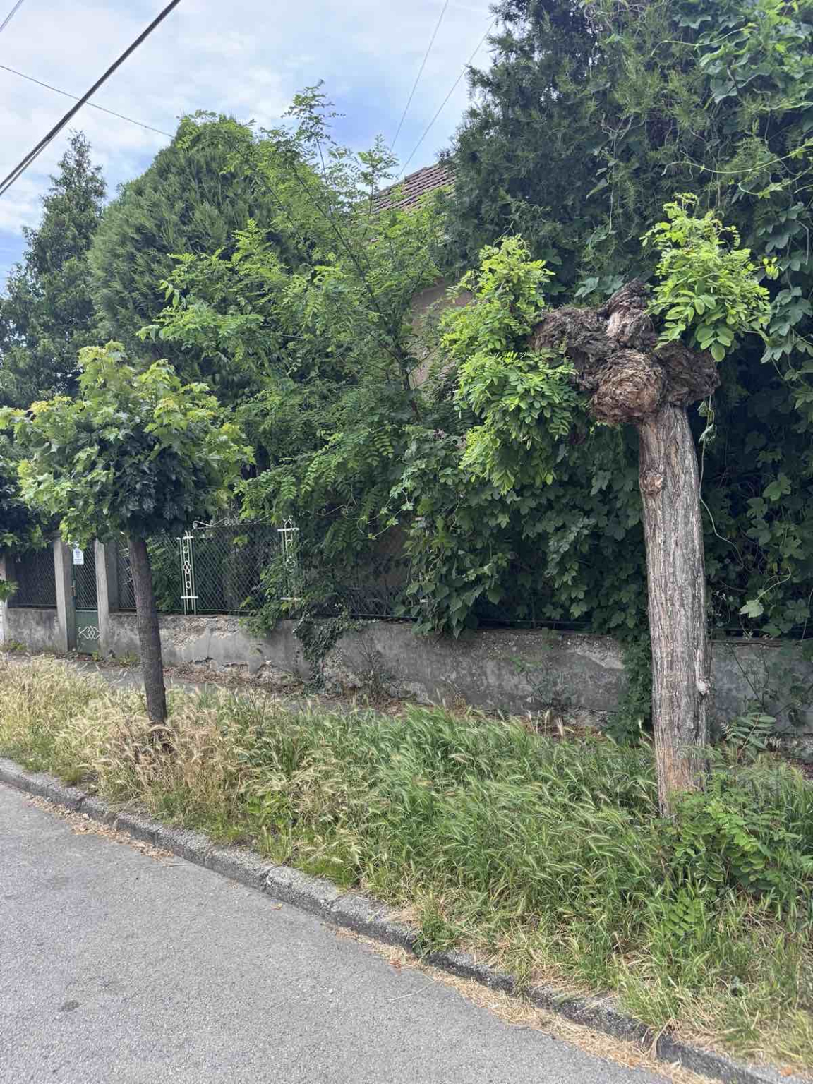 Sajnos a ház nem lakott, viszont már többször hagytunk a kerítésen írásos kérést, hogy gondoskodjon az utcára, járdára hajló növényzet eltávolításáról, de eddig még nem történt semmi.