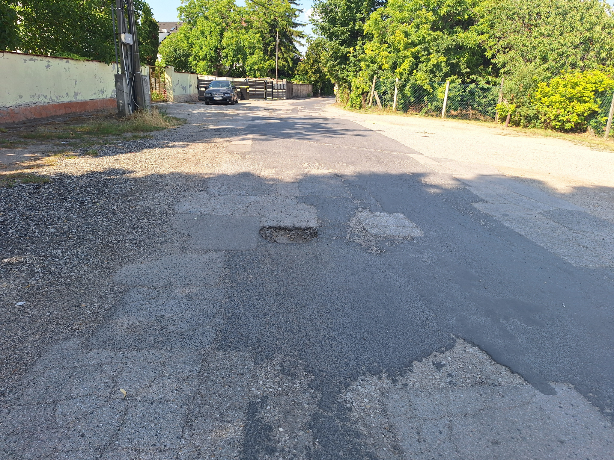 Mivel keskeny az út, mert nincs rendesen leaszfaltozva az utca, így két autó egymás mellett nem fér el rendesen és az út szélén kerülgetik egymást. Kérnék a teljes utca szakasz újra aszfaltozását, a gödrök megszüntetését, mielőtt valamelyik autónak kitörik a kereke, egy biciklis vagy gyalogos elesik és nagyobb baj lesz.