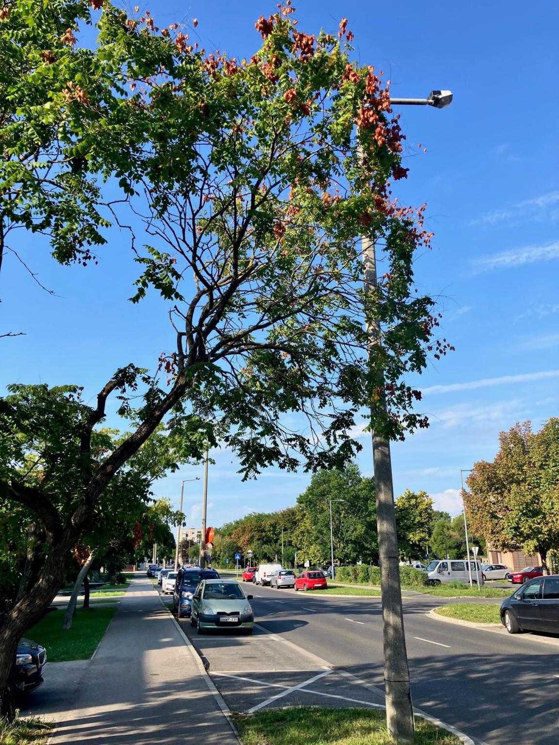 tavasszal virágzás idején a járda és az úttest erősen szennyeződik,