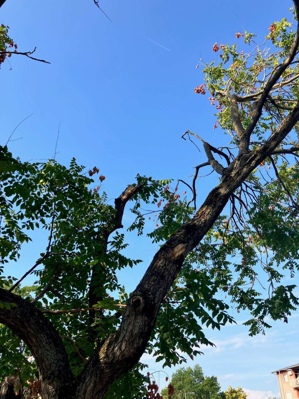 Kérem szíves intézkedésüket a fa állapotának felülvizsgálata, szükség esetén gallyazása vagy eltávolítása érdekében.
