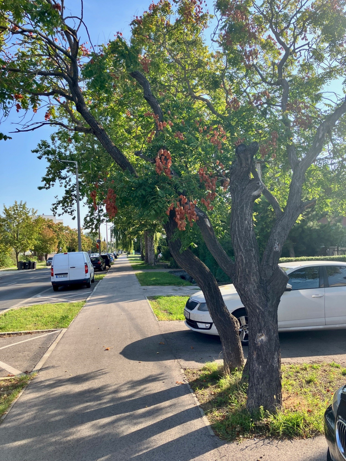 A 9028 Győr Zöld utca 16. szám előtti ingatlan előtt, közvetlenül a telekhatáron három fa található, melyek az elmúlt évek során jelentősen megnőttek és elöregedtek.