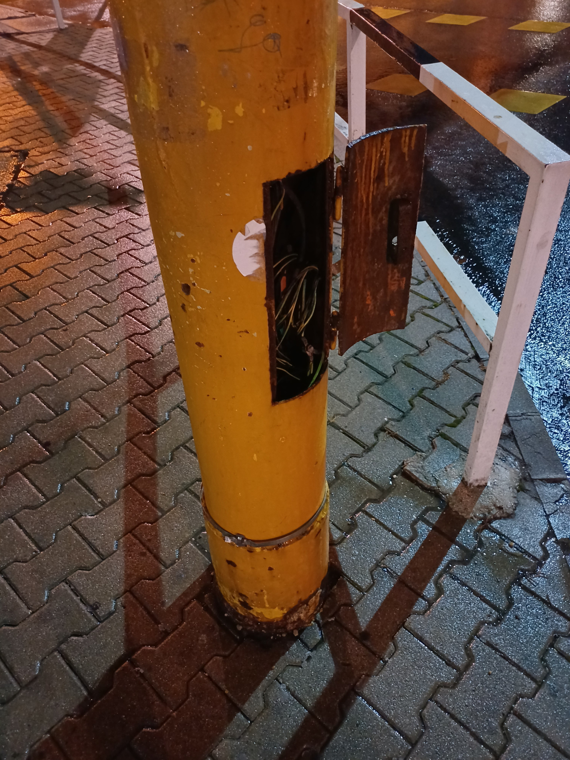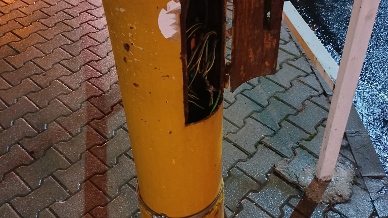 A polgármesteri hivatal szomszédságában található villanyoszlop ajtaja nyitott.