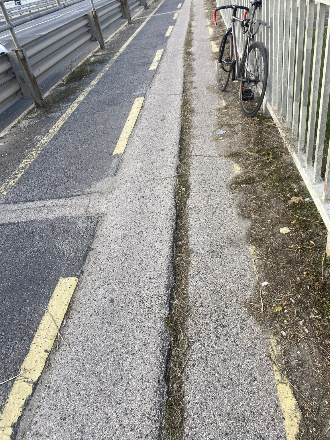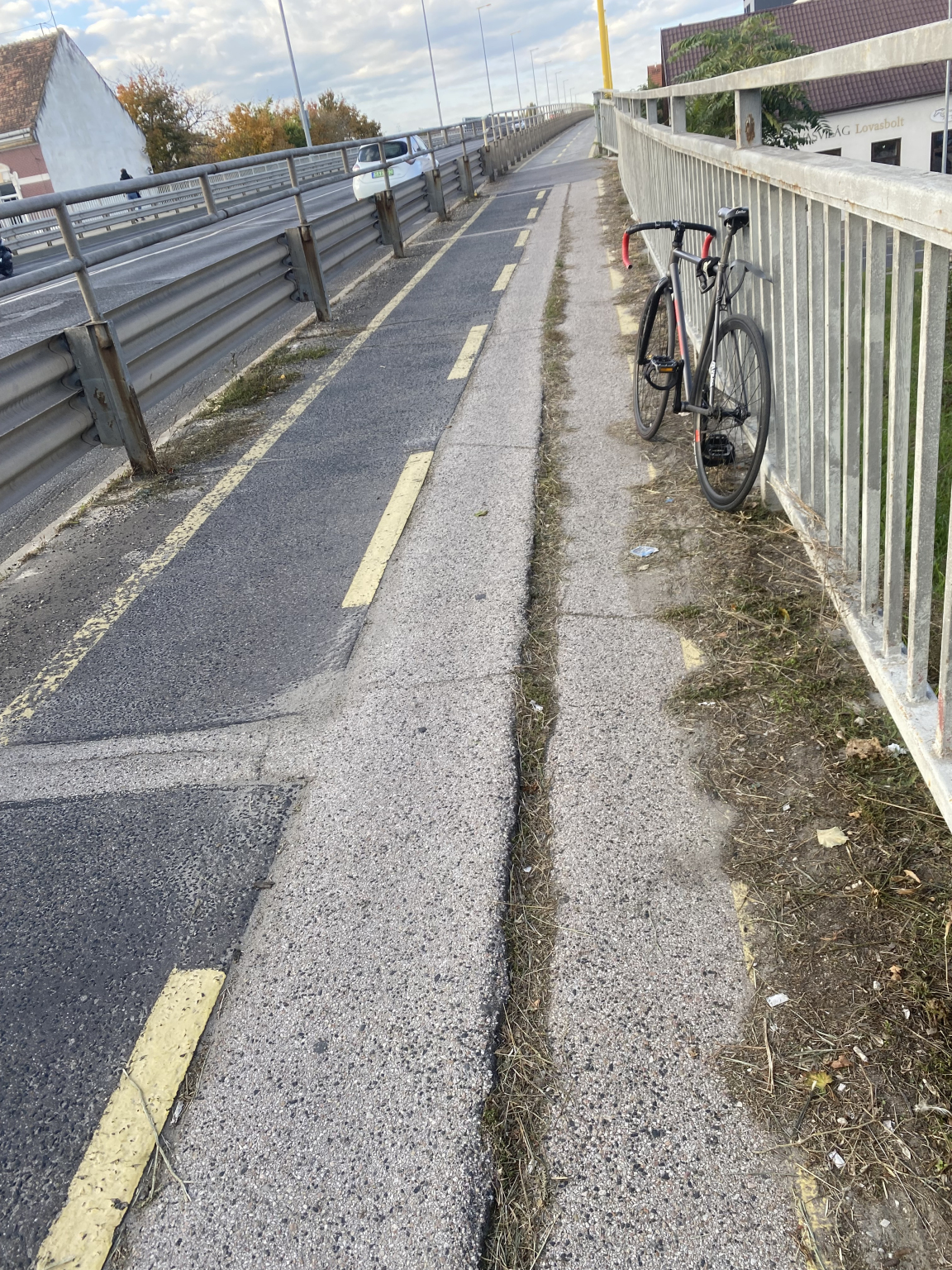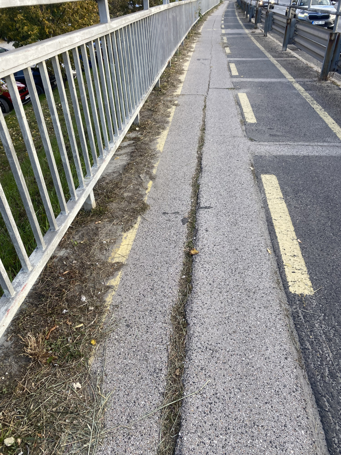 Széchényi híd - Árkád felőli oldalán a kerékpárút rendkívül veszélyes módon "szétnyílt" bicikli és roller kereke is könnyen elakadhat benne.