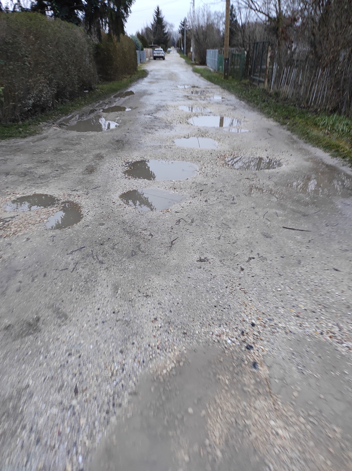 Nektár utca első fele tele van kátyúkkal.