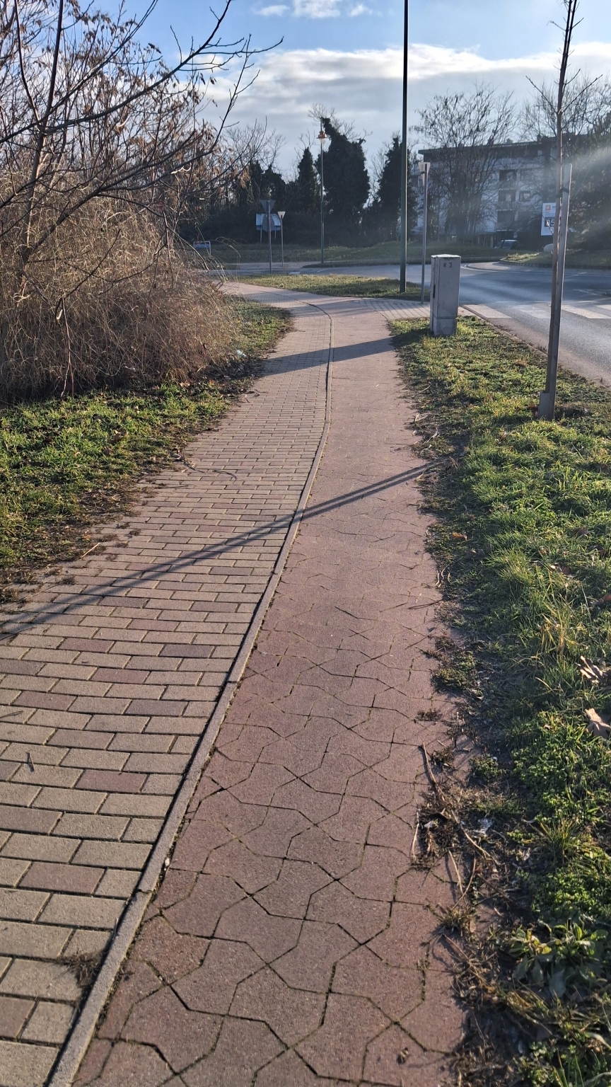 Győr József Attila út - Máté Mária utcánál lévő körforgalomnál a járdát/bicikliútat benővi a bokor a fa illetve a fű. Már csak egy sávon lehet közlekedni.