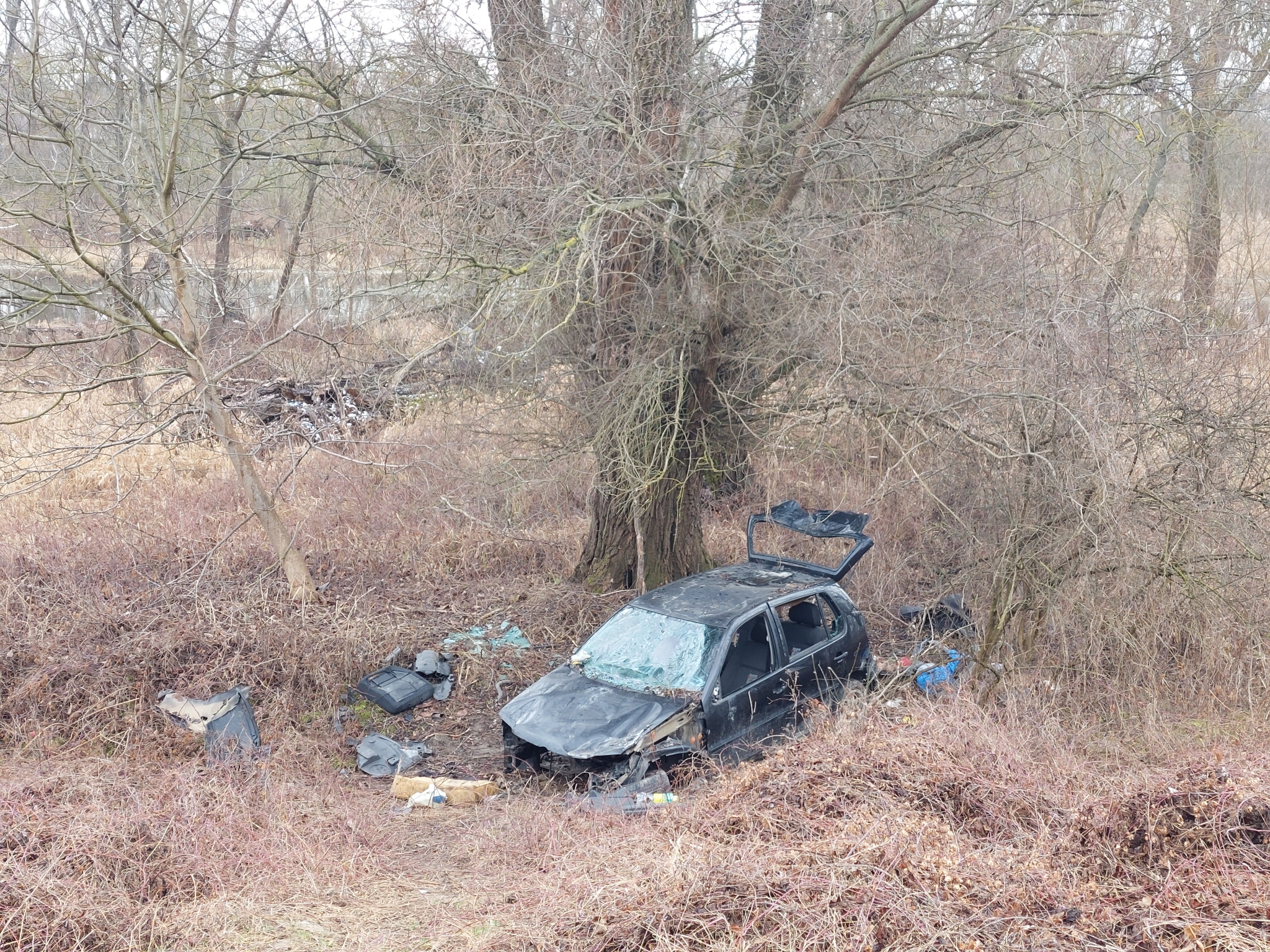 Egy látszólag régóta gazdátlanul álló autó az út mellett. Pontos koordináta a csatolt fotón.