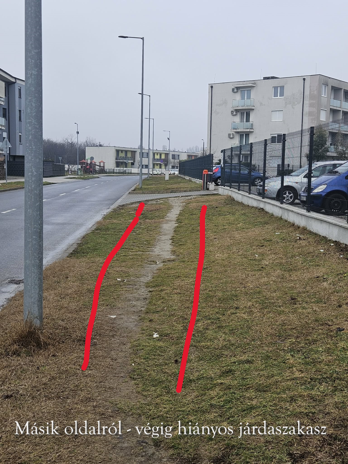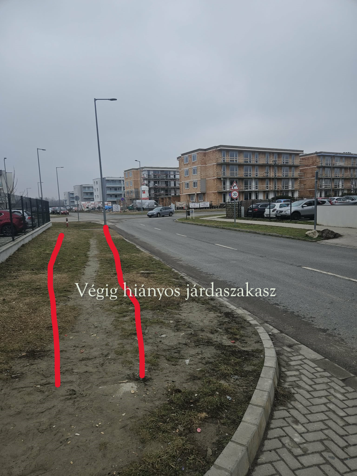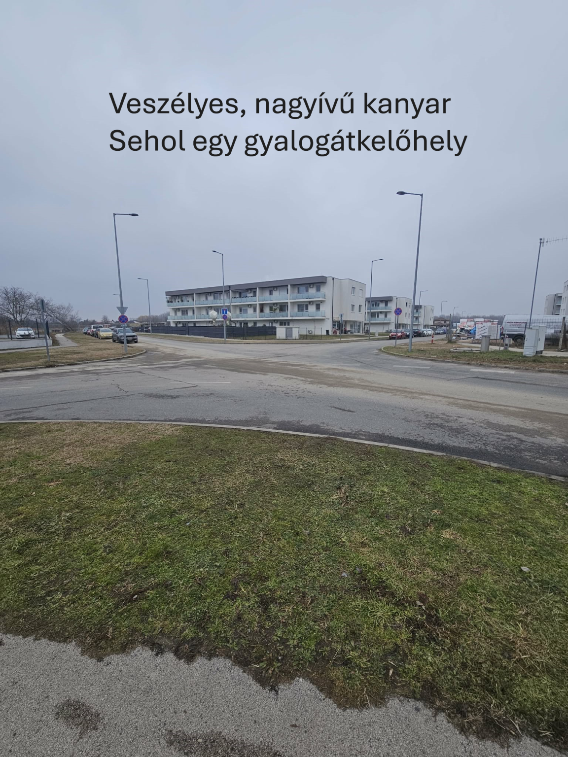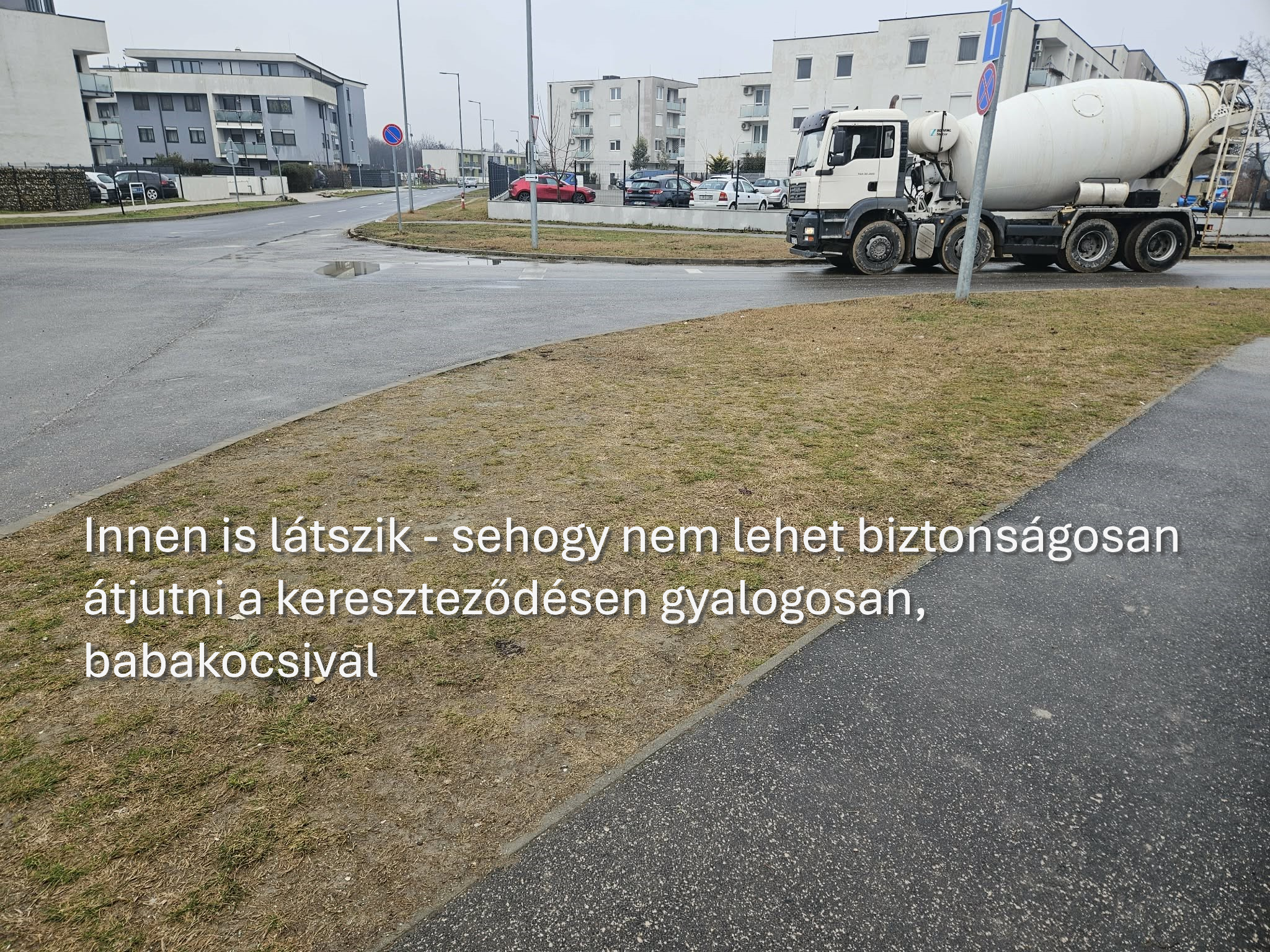 - gyalogosan emiatt mindenki a füves részeken tud csak össze-vissza átjutni a kereszteződésen (esőzések esetén csak a sárban)