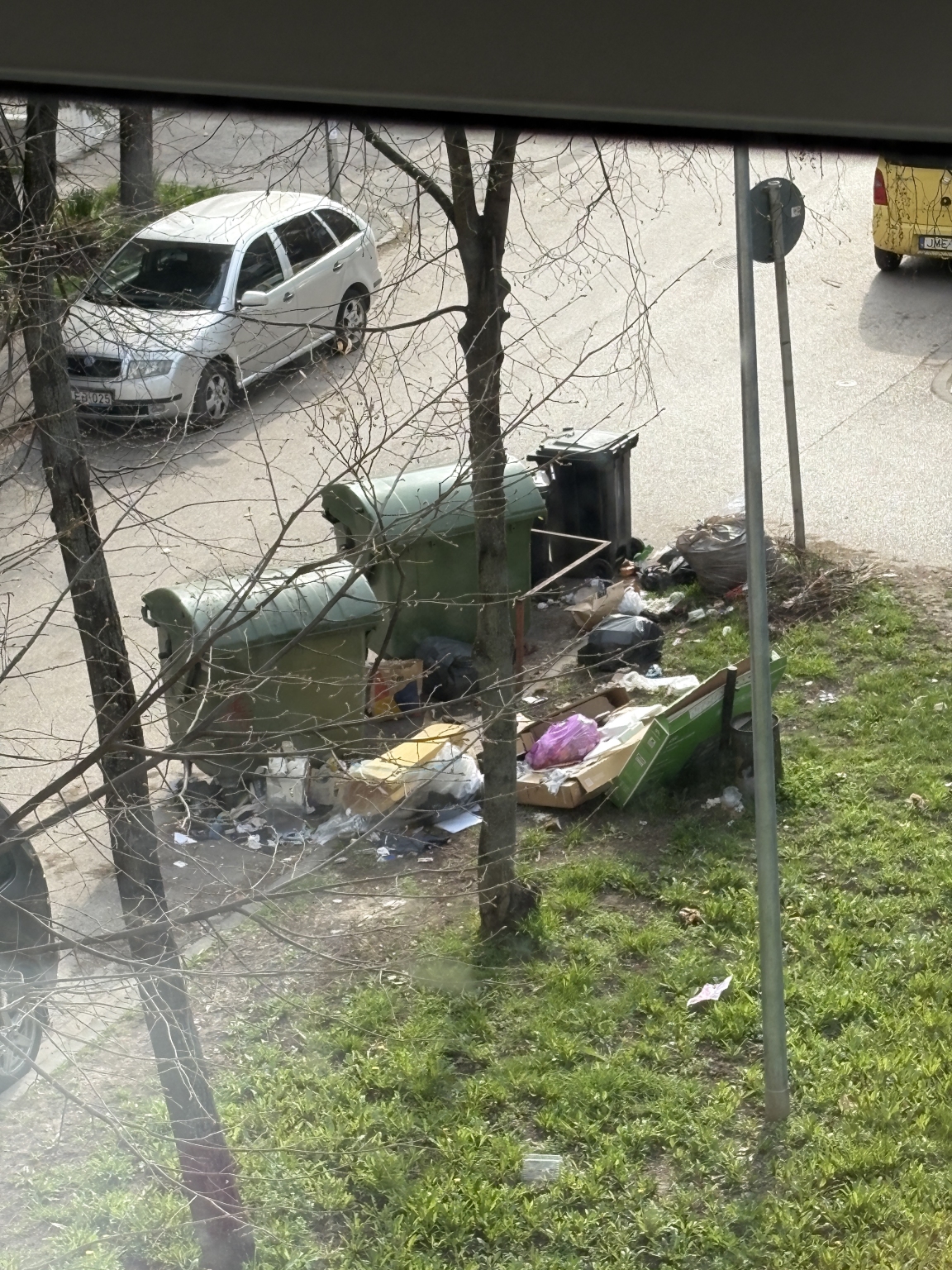 Ott maradt szemét a kuka körül. A kukások nem hajlandóak összeszedni és elvinni a szemetet, pedig nem fér sose bele a szemét a kukába.