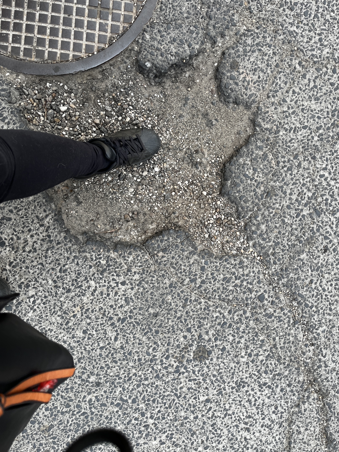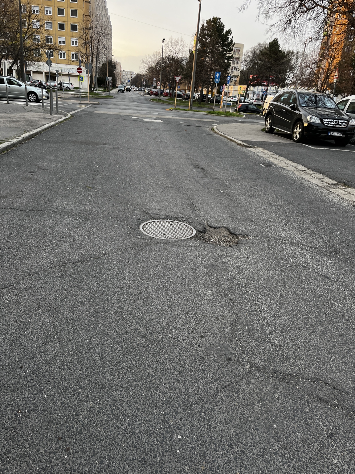 Kátyú található Győrben a Lajta út és az Ikva utca sarkánál, a Lajta út 29. számú tömb előtt. Az úttesten van, balesetveszélyes