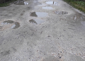 Az amúgy is szűkre szabott utcarészben alattomos lyuk tátong.