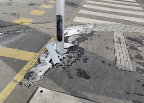 Néhány hónapja már kidöntve az elsőbbségadás tábla egy kereszteződésben.