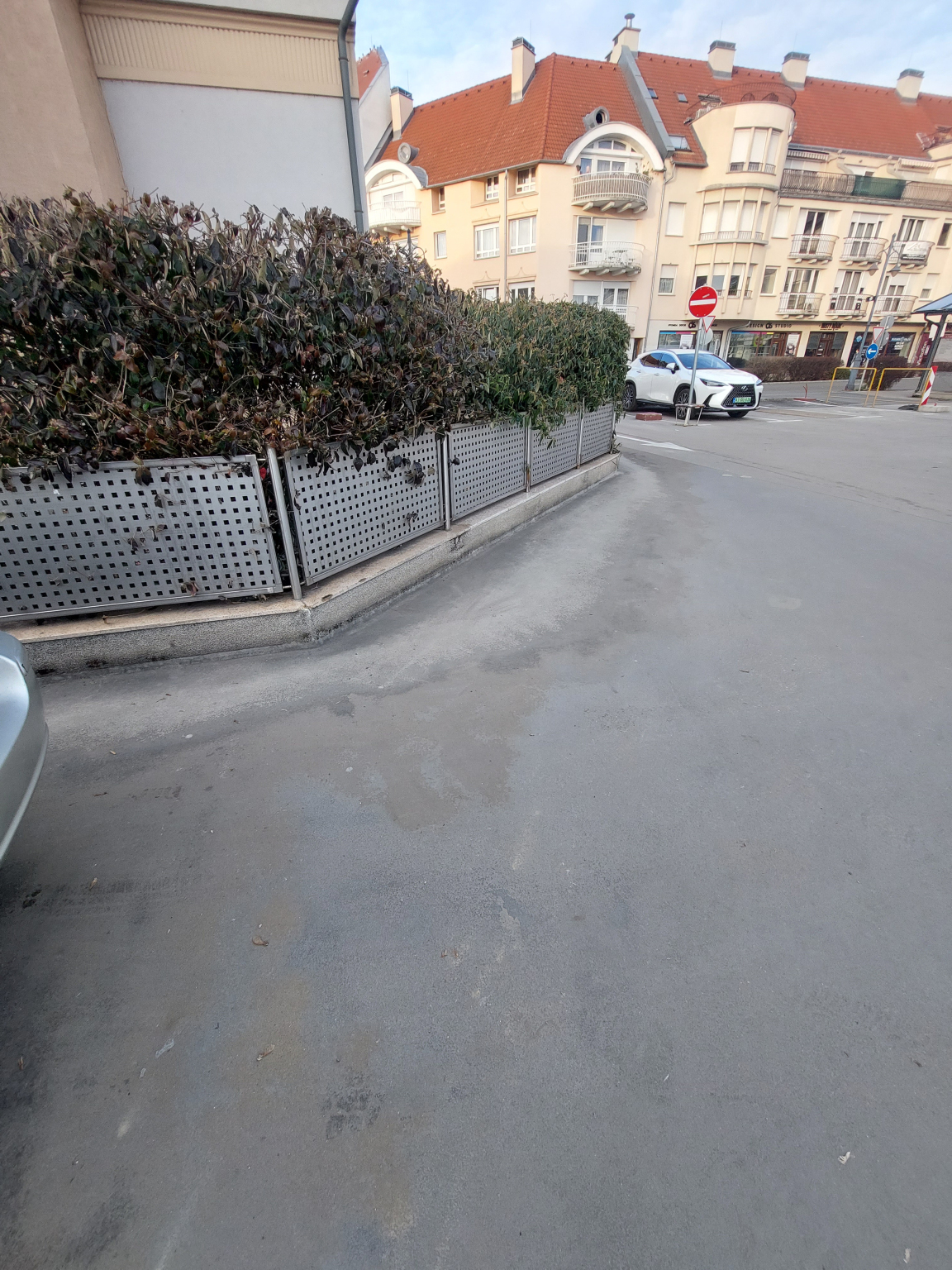 Az alabbi helyen vslaki kidontotte a parkolo korlatot, nincs,elkeritve balesetveszelyes.