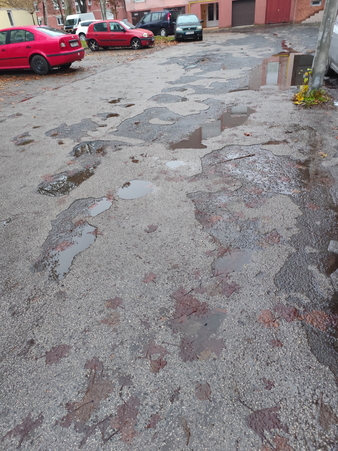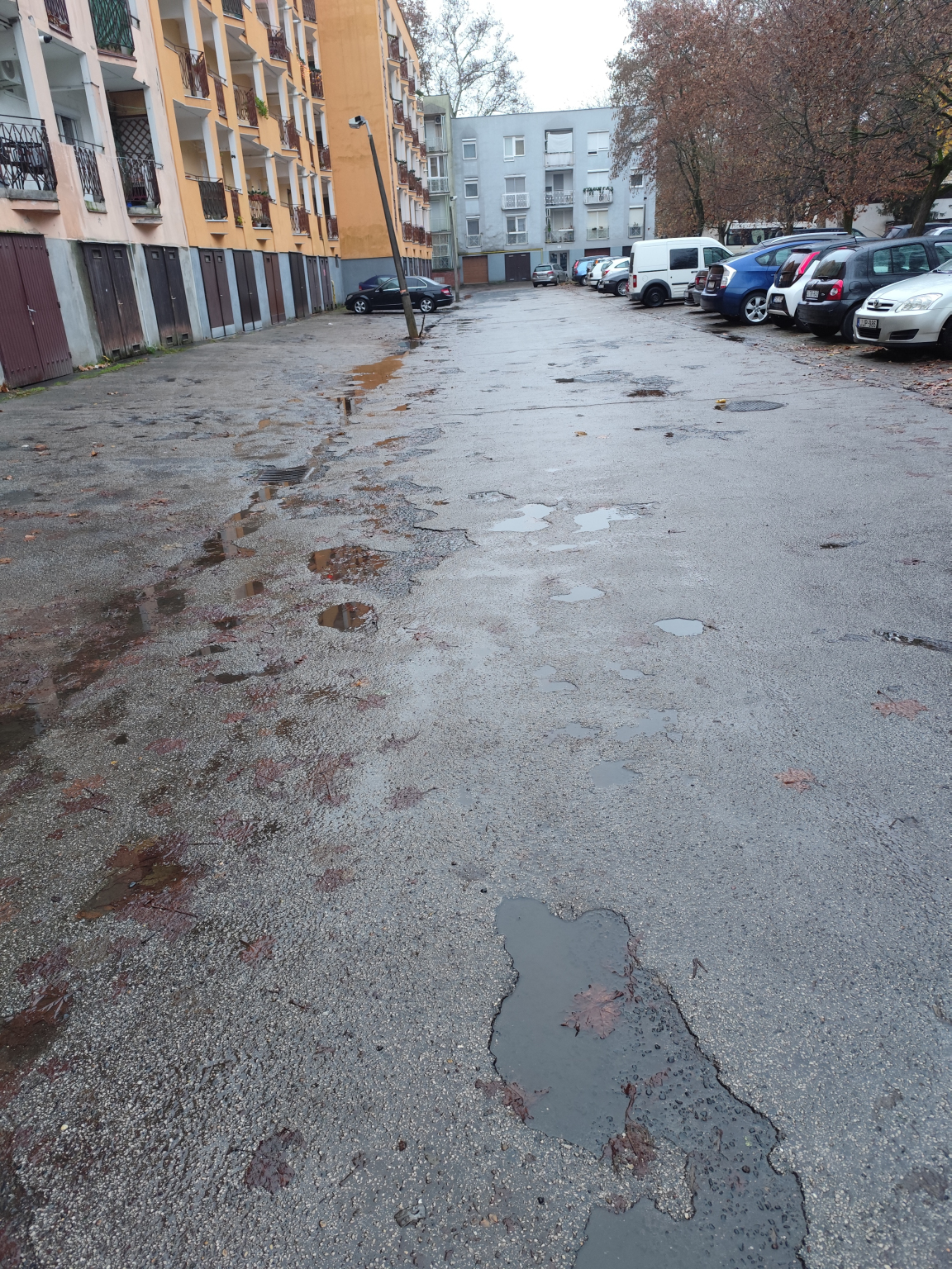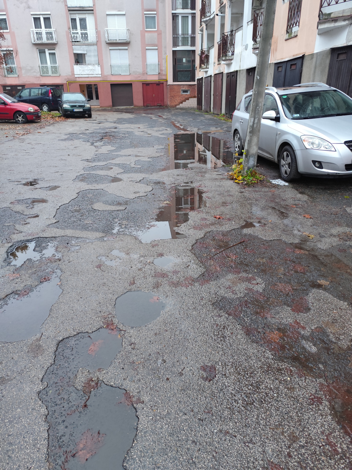 A házunk körül nagyon sok kátyú van, valamelyik akár bokáig ér. Esőzések alkalmával szinte lehetetlen gyalog közlekedni. Illetve a kocsiknak sem tesz jót a kátyúkban való közlekedés. A ház társasház, úgy tudom, akörül 80 cm a ház feladata, a lakók vállalnák a rájuk eső részt,de sajnos az összes kátyú kívül esik a 80 cm-n.
