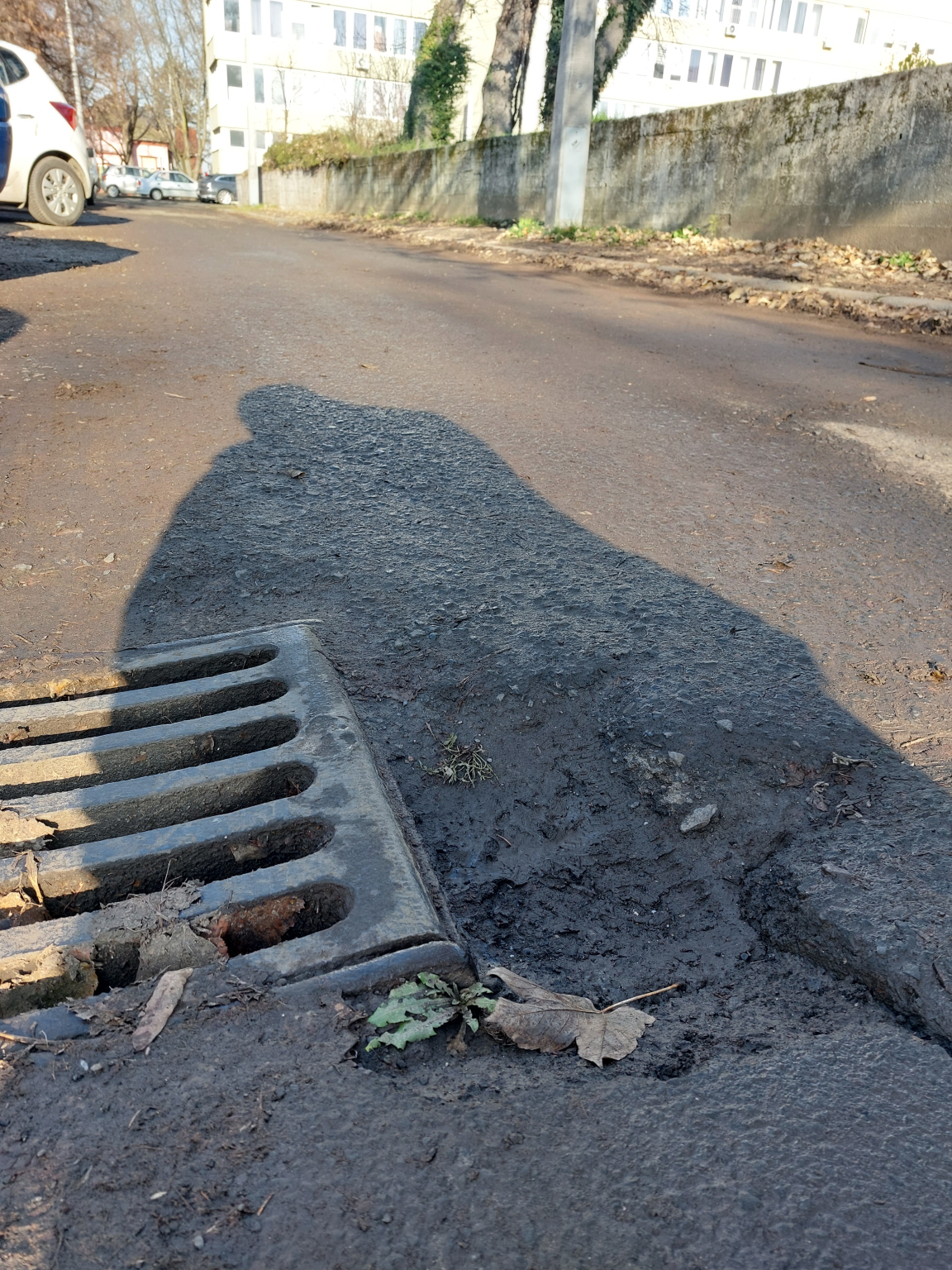 Kérem pótolják a hiányzó burkolatot, mert az könnyen felsérti a járművek kerekét.