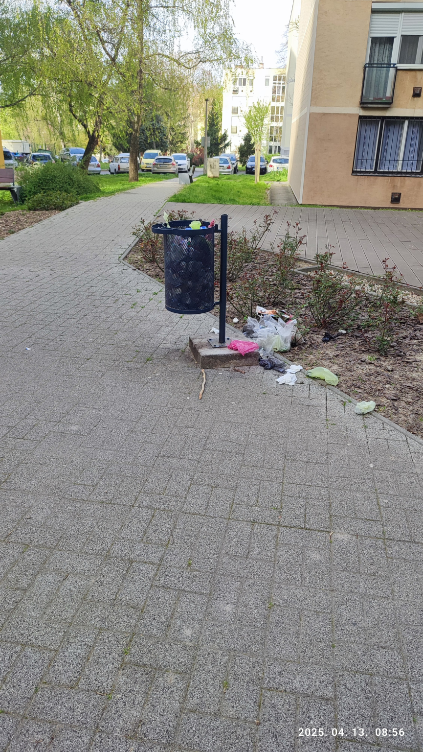Kaposváron a Honvéd utca 43-as ház mögötti kis parkban a kuka űrítése nem történt meg és a szemét a virágok között található.