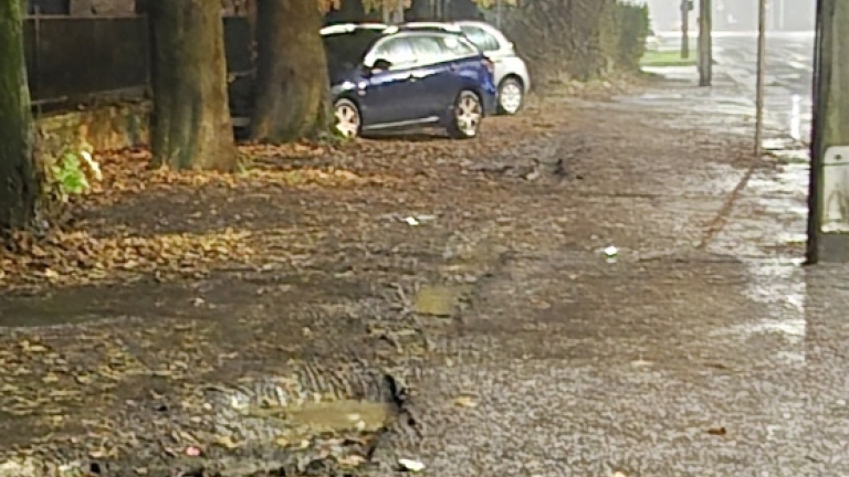 A Munkácsy gimnázium 48-as Ifjúság felöli oldalán a gesztenye fák alatt autók parkolnak. A fák alatti területet tönkreteszik a koszt és a sarat felhordják a járdára, ami ez miatt csúszik és balesetveszélyes.