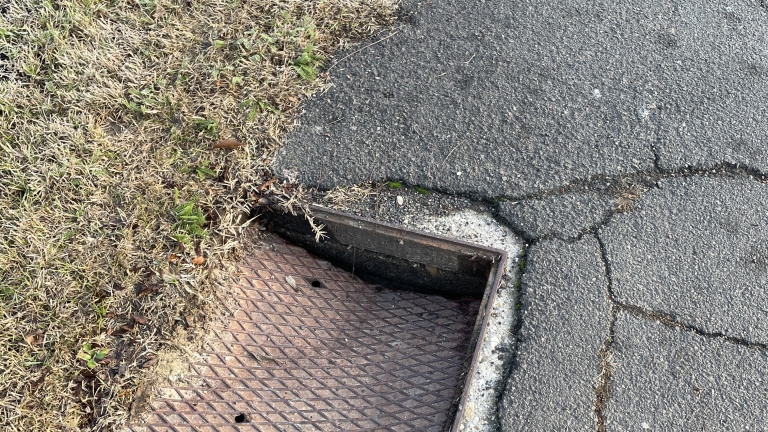 Kaposváron a Szalay Fruzsina utcában a 13-as szám előtti járdaszakaszon feltehetően jármű hajtott fel a járdára és ennek következtében meghajtott az aknafedél. Balesetveszélyes, sötétben könnyen beleléphetne valaki.