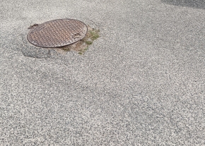 Az úttest közepén erősen megsüllyedt a fedlap.