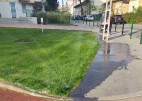 A Lestár téren a képen látható helyen van 2 mély bokatörő lyuk a járdán.
