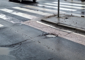 A Szüret u. - Áfonya utca kereszteződésében, a kereszteződéstől pár méterre az Áfonya utca felé egy mély kátyú található (a képen szereplő állapotnál már nagyobb). Kérem a javítását.