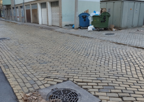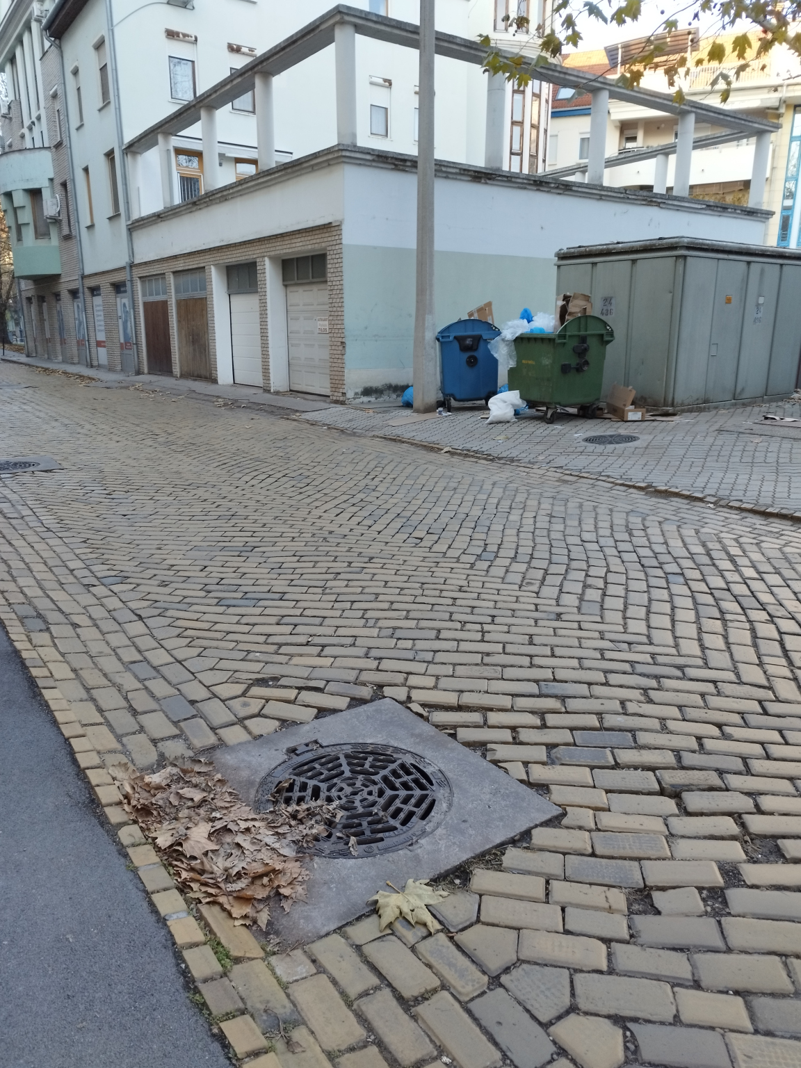 A Fecske utcában a képen látható vízelvezető erősen kiáll az útból. Megsüllyedt körülötte az út, illetve az út közepén jól láhatóan kilazultak a kövek.