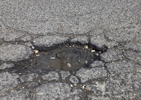 Mély, nagy felületű kátyú a burkolaton