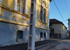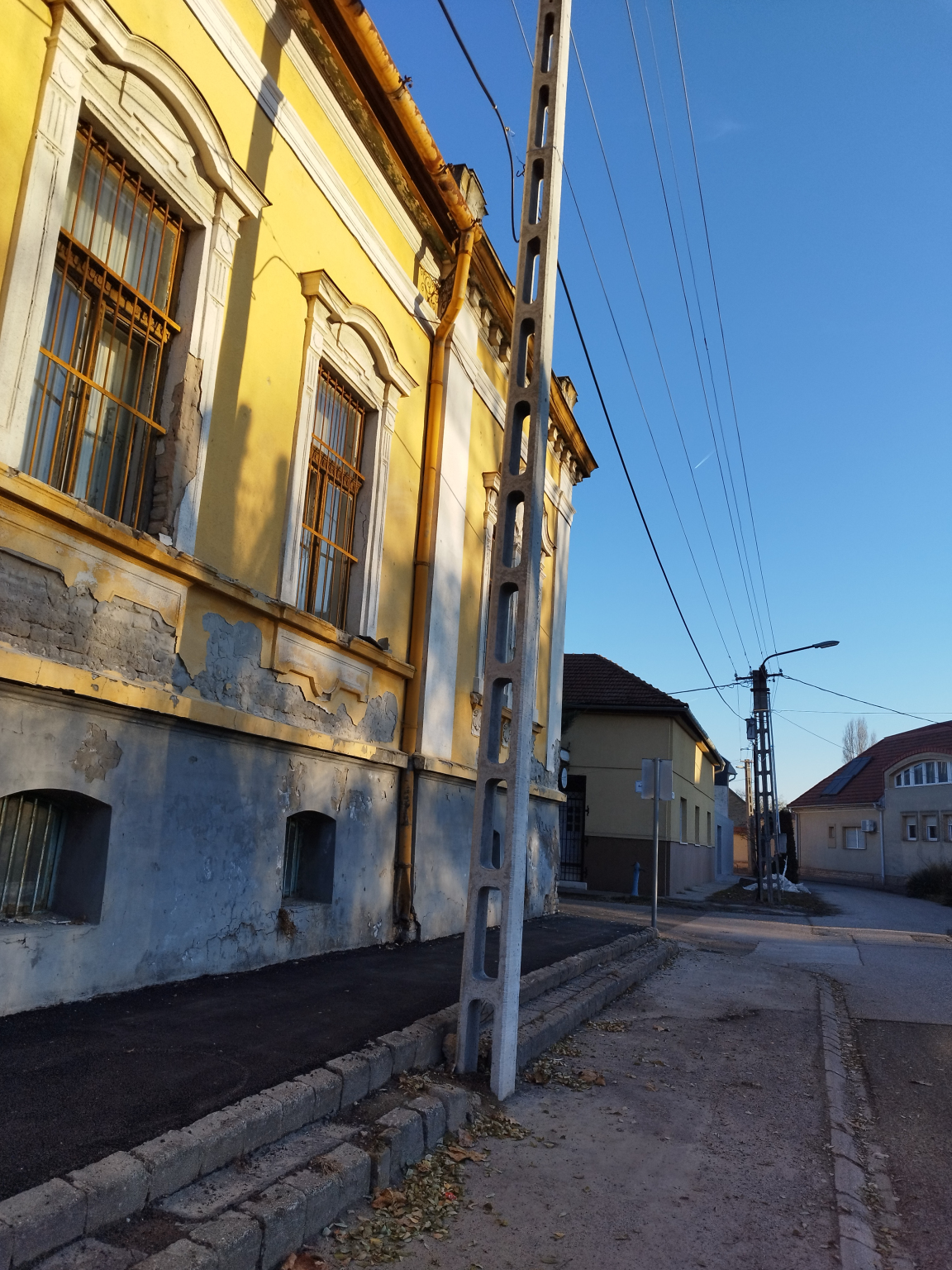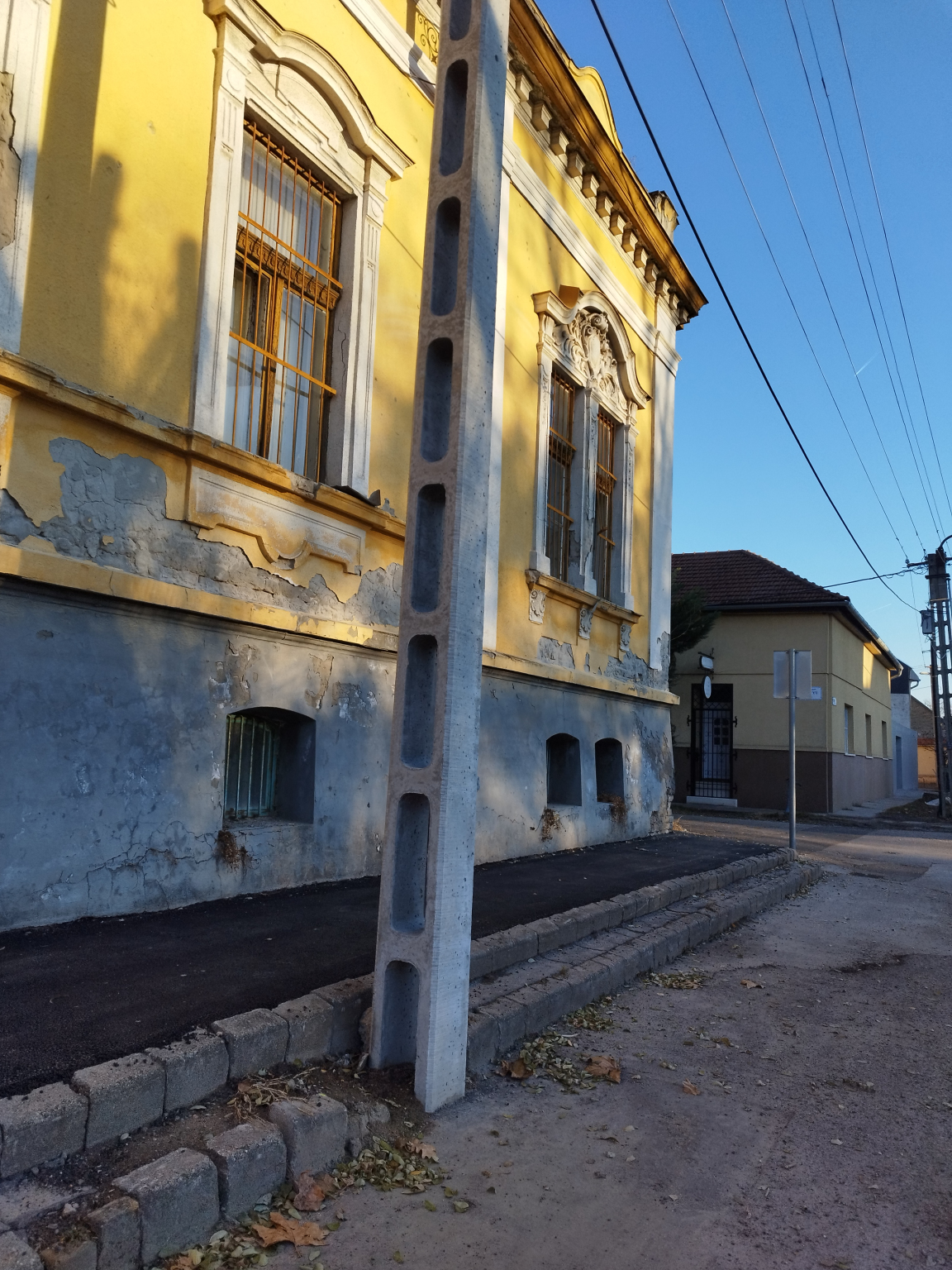 A László Károly utca - Boldog utca sarka közelében található vezetéktartó oszlopot megnyomta egy autó, így el van ferdülve.