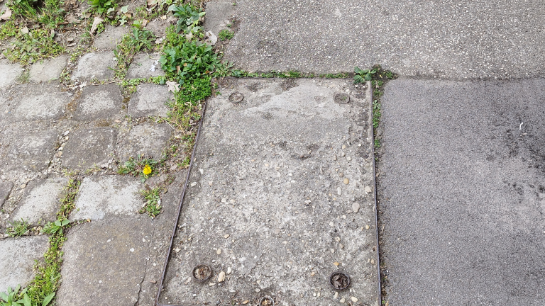 A Fráter György utcában a képen látható kisméretű fedlap erősen töredezett.