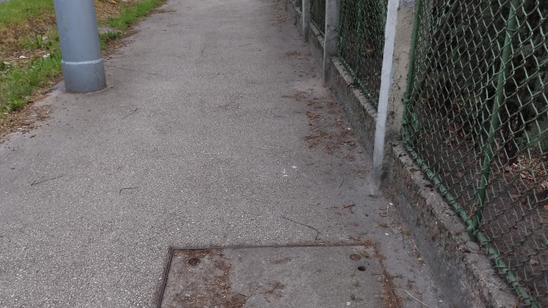 A Bethlen körút - Bocskai utca sarkán lévő fedlap töredezett.