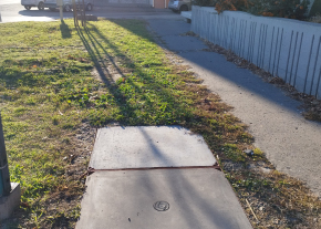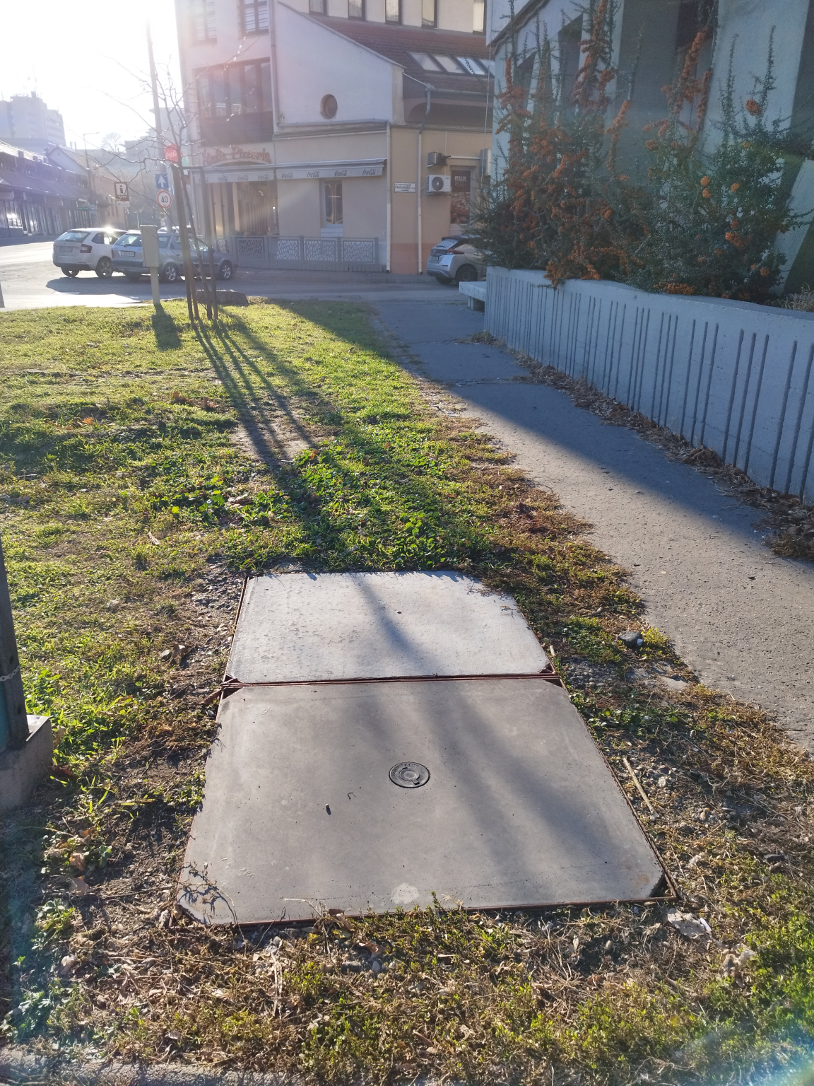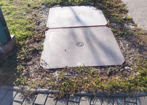 Sérült a fedlap a Piaristák terénél.