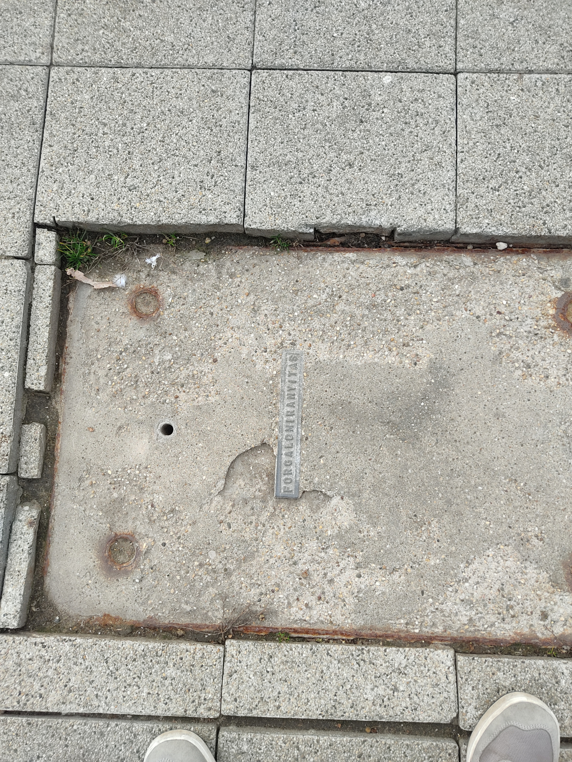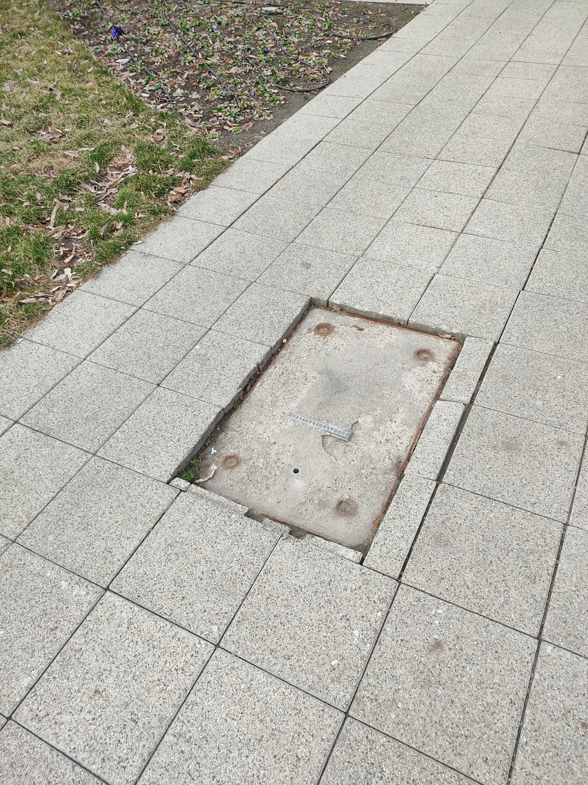 Megsüllyedt aknafedél van a Szabadság téren a Technikai Házával szemközti oldalon.