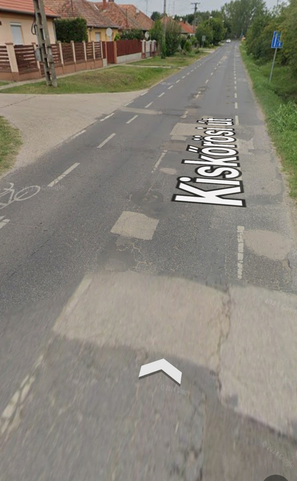 Rossz minőségű, kátyús, hullámos aszfalt a Kiskőrösi úton