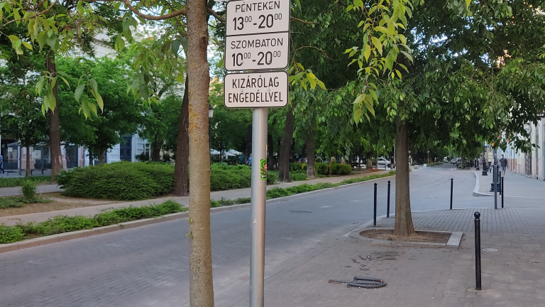 Indokolatlan parkolást tiltó tábla a Rákóczi úton