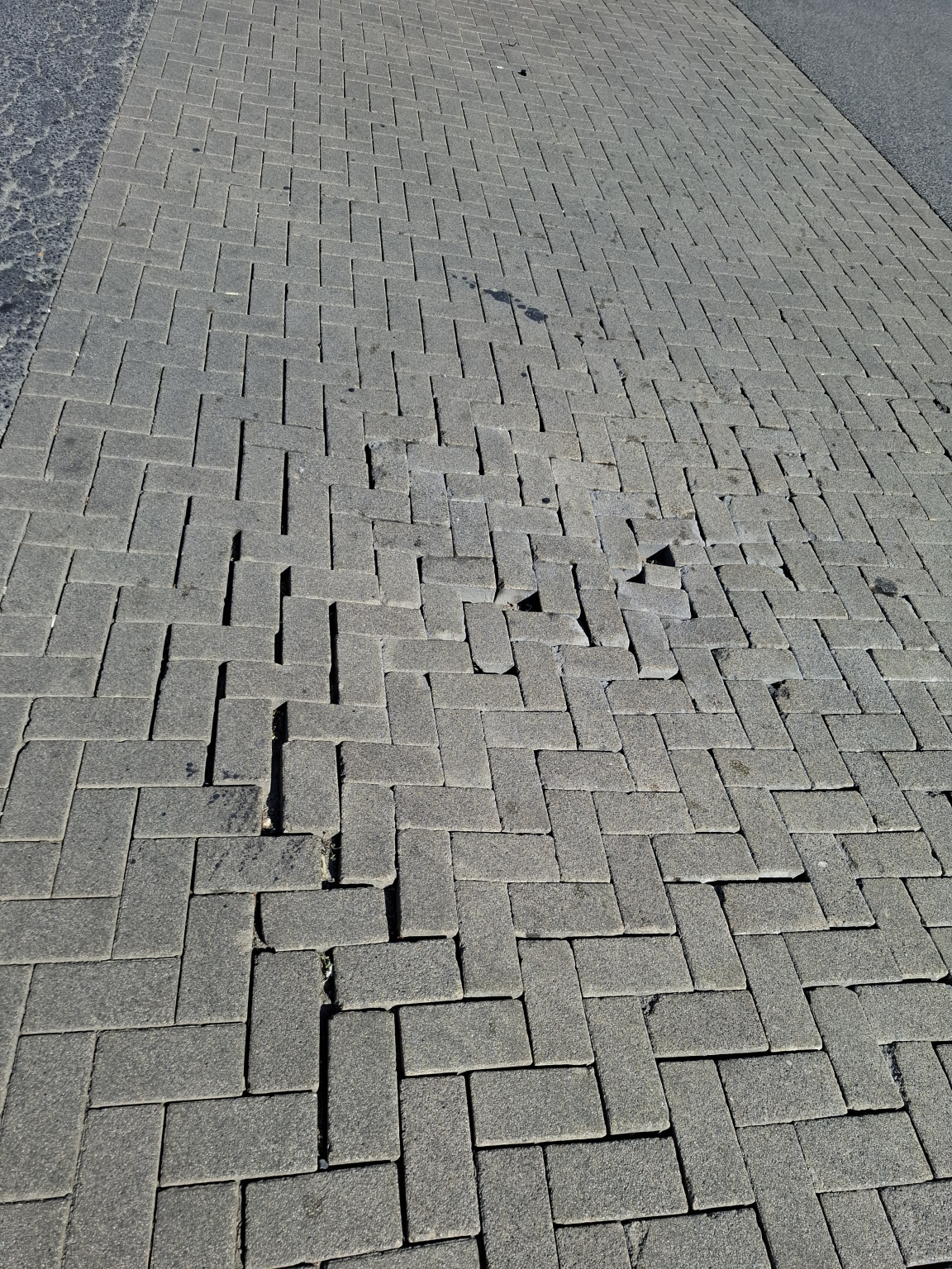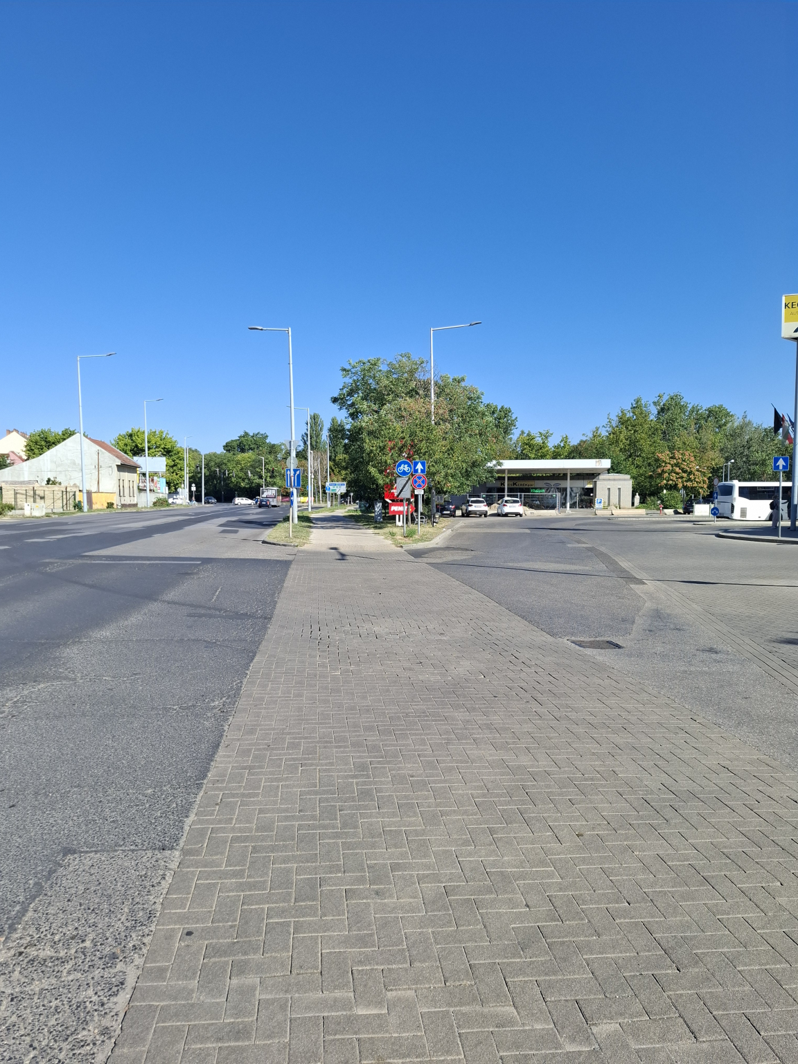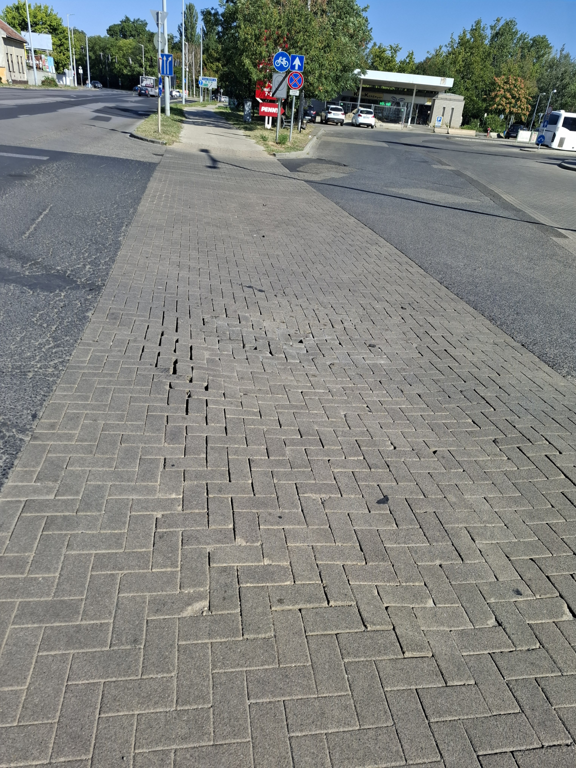 A buszállomás előtt átvezető térköves kerékpárút 2 helyen is jelentősen megsüllyedt, a térkövek elmozdultak, sérültek.