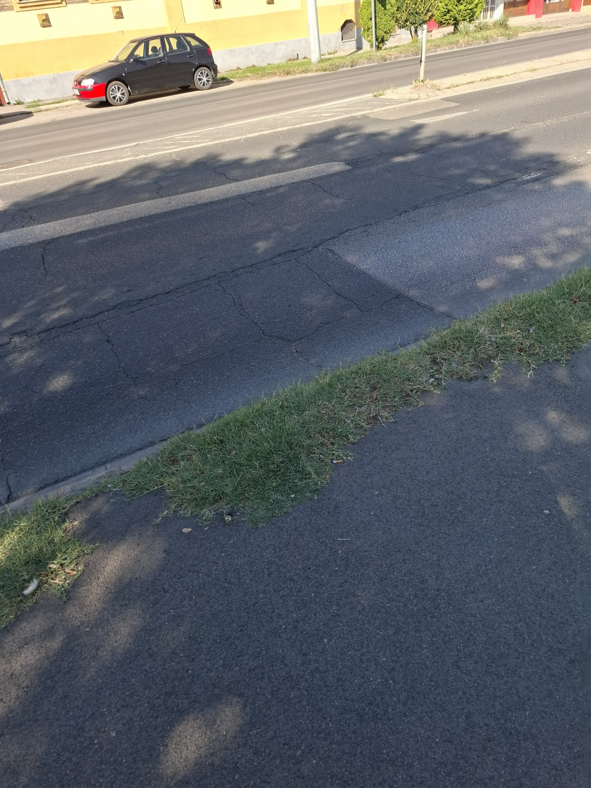 A megjelölt helyszínen az út menti szegélykövek között sok a gaz. Kérem végezzenek takarítást!
