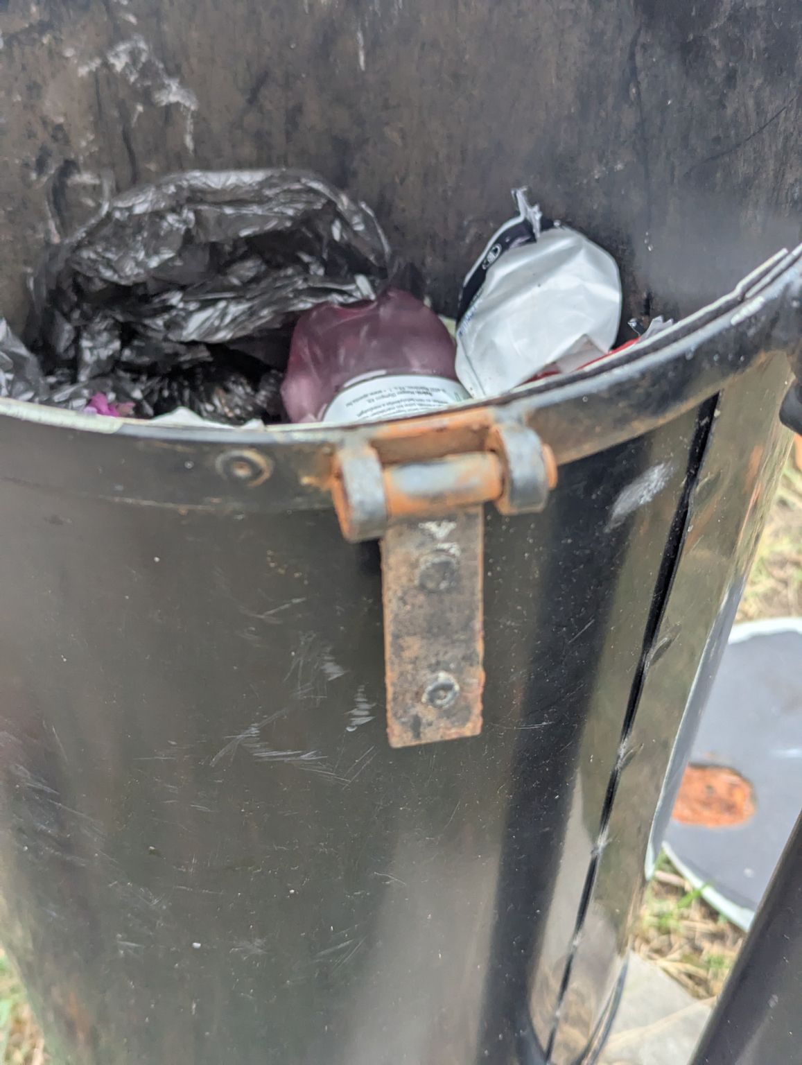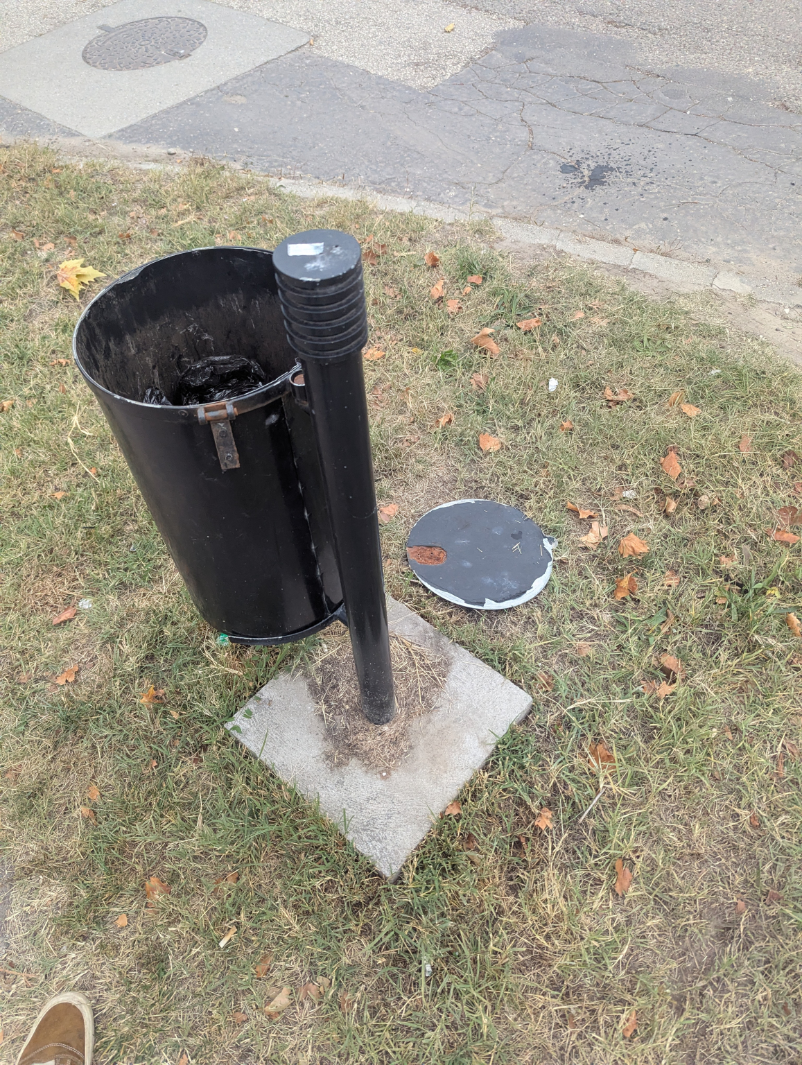 Sérült kutyaürülék-tároló a hunyadivárosi Univer Áruháznál