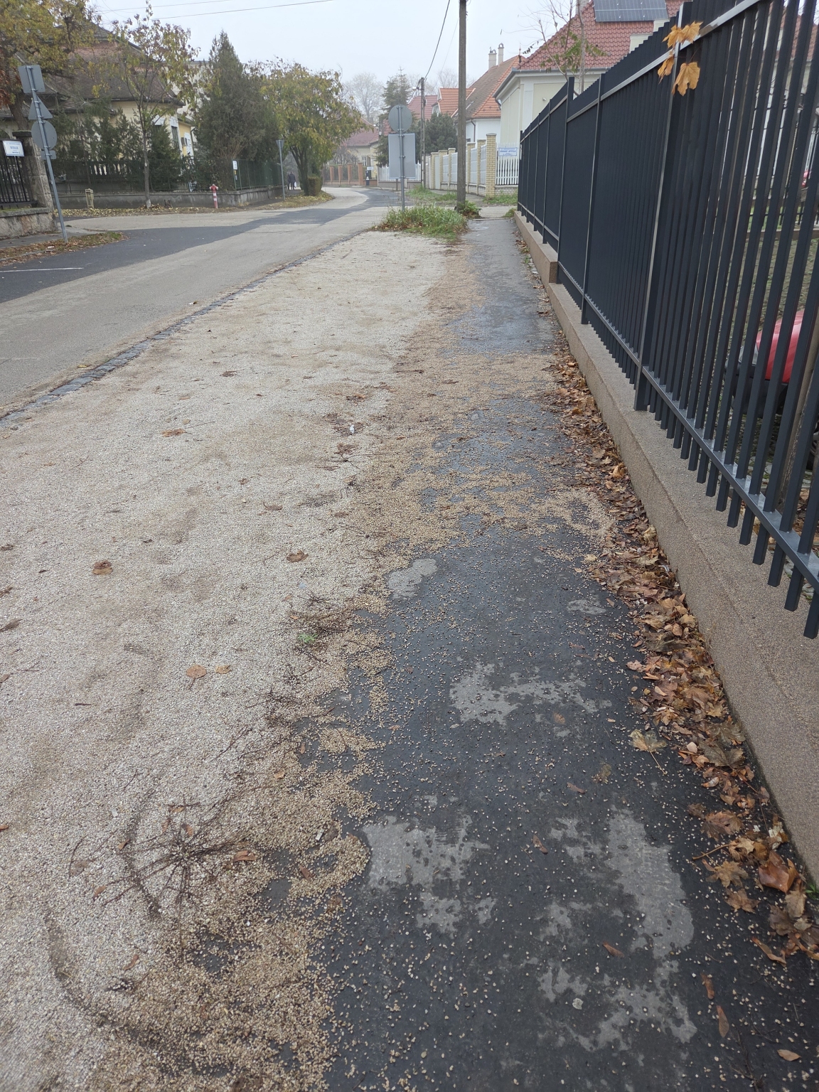 Veszélyes járdaszakasz (apró kavicsok a járdán)