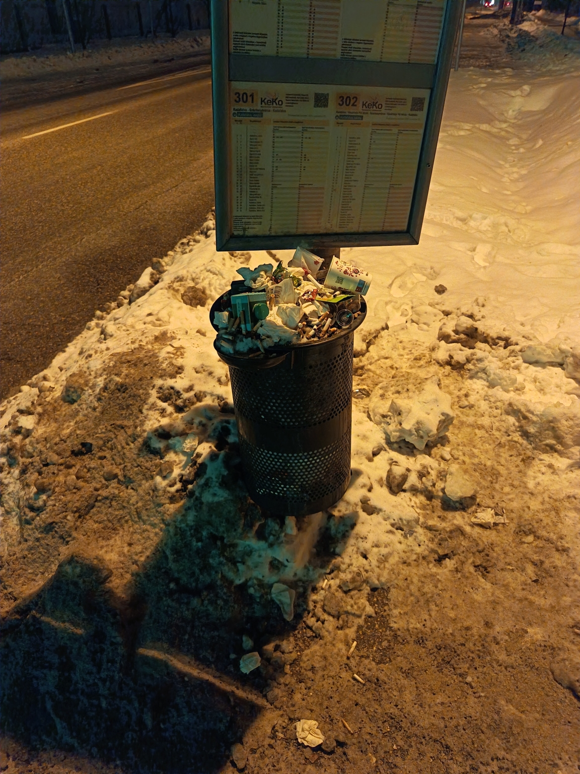 Tele van a Kadafalvi Iskola buszmegálló kukája