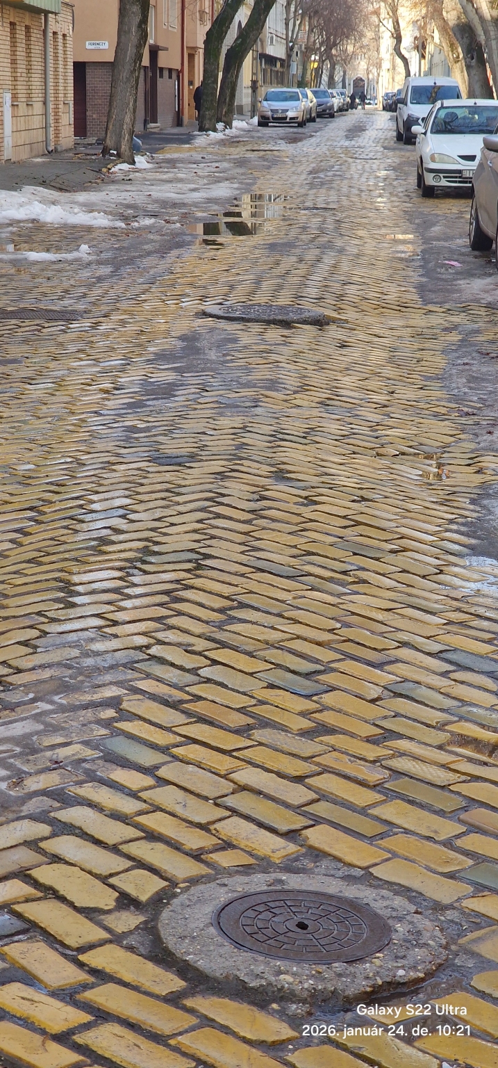 Megsüllyedt útburkolat kiálló akna