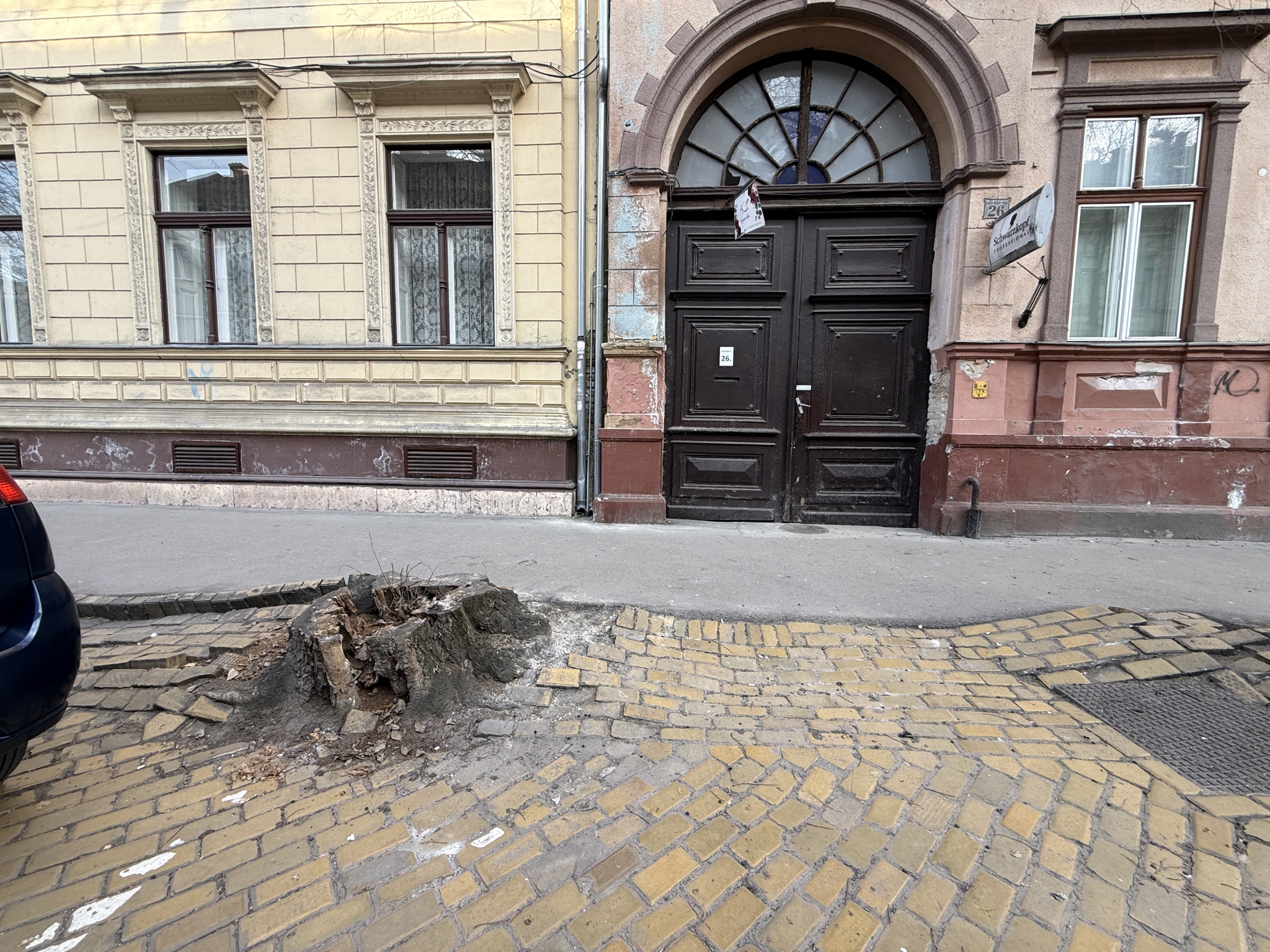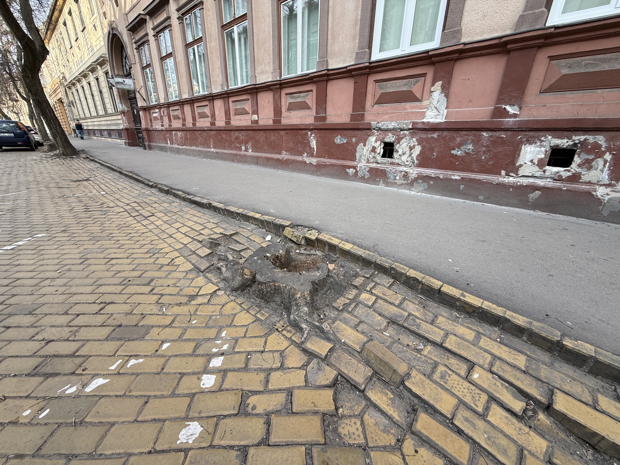 A kivágott fa tuskók parkoláskor veszélyesek.