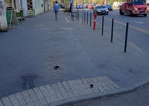 Funkció nélküli oszlop a Kisfaludy utca Városháza felőli végén