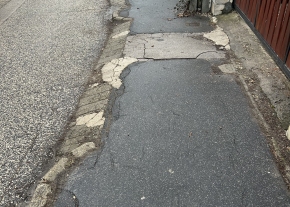 A képen is látható járdaszakasz balesetveszélyes módon repedezett a Piarista Gimnázium és a Lővei Klára Kollégium közötti részen. Kérem az illetékesektől a járda állapotának rendezését!