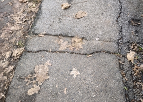 Mély gödör a járdán. Csongrádi és perc utca sarkánál a belvaros felé.