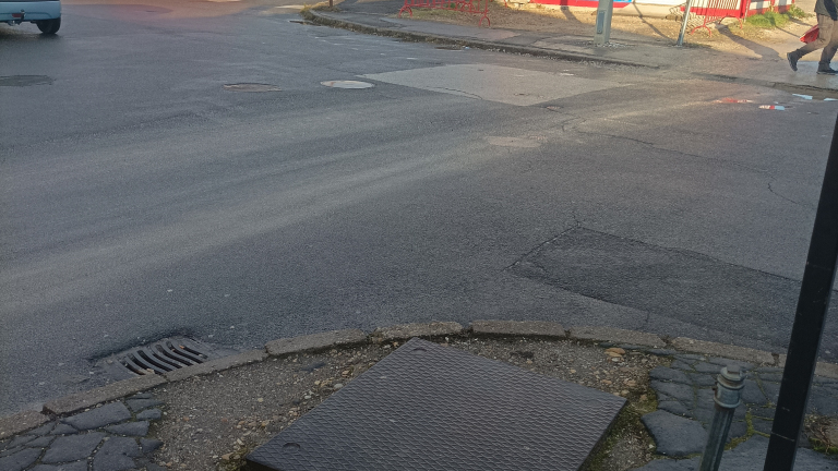 A képen látható aknafedél nem illeszkedik a járda szintjében, ez a nagy eltérés balesetveszélyes a nagy forgalmú járdán. Kérem javítsák meg!