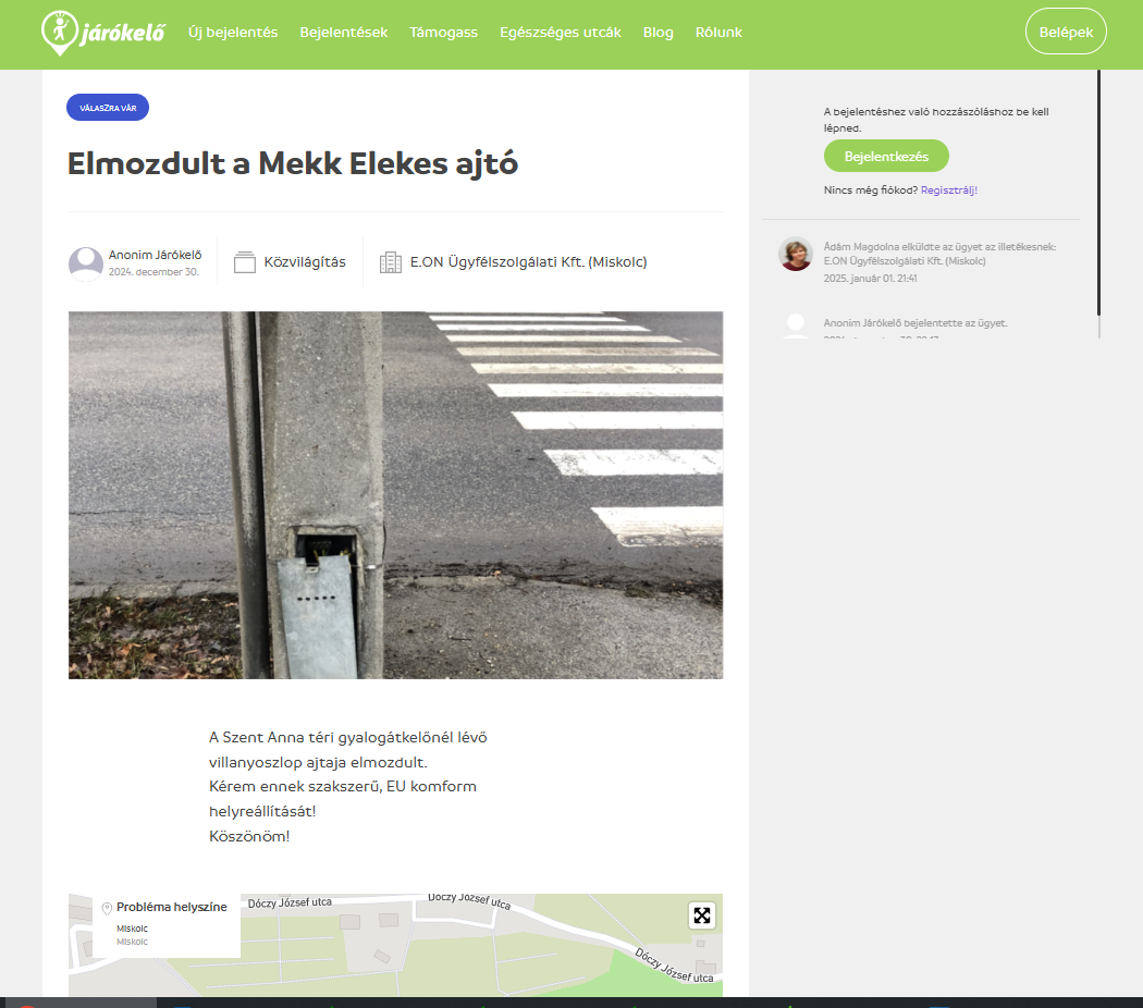 A lenti bejelentéssel kapcsolatban tájékoztatjuk, hogy a jelzett oszlop ajtaját társaságunk helyreállította.