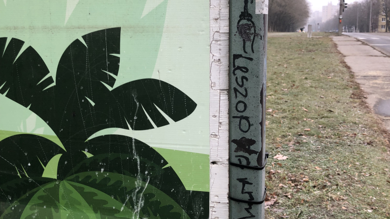 A miskolci Szent Anna téri utasváró fülke vasváza tele van graffitivel, egy újrafestést vagy takarítást megérne az egész, főleg mert trágár feliratok is éktelenkednek rajta.