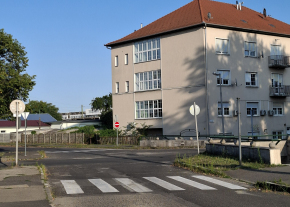 A vasútállomás és a villamos megállója között lekopott a gyalogátkelő felfestése. Mivel rendkívül forgalmas, kérem mielőbb javítsák!